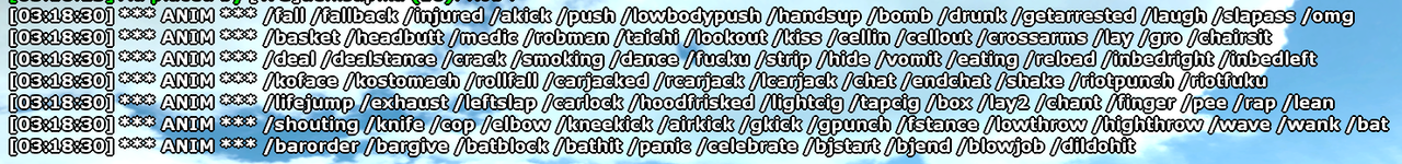 - Afișează o listă cu toate animațiile disponibile pe serverele B-Zone RPG.