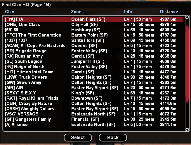 If you select the fifth item in the list, a dialog will be displayed where you will need to select the clan you want to locate.