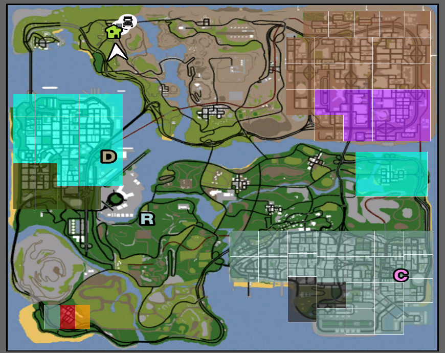 - Comanda va suprapune zonele controlate de mafii, corespunzător culorii, peste harta din joc.